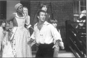 Wednesday, September 27th 1999 The Phone Call I was very surprised when Columbia pictures called. It's been over two months since I stood in line for three hours in the blazing heat outside Winthrop College in Rock Hill. All this to hand in my photograph and social security number in the hope of being an extra in this new movie they're shooting in South Carolina. And now, Shirley Crumley, the Casting Director is on the line wanting me to come down that very afternoon and get fitted up for a costume. Yeah right! I've got a business to run! As if I can drop everything at a moment's notice just to be in a movie. I do of course. The production office is in an empty building in a mall in Rock Hill. In retrospect, I think my mistake was to go in there without a large sign saying "Not a Movie Person. Haven't Got a Clue. Please Help." Everyone assumes I know what they are talking about. From the chaotic atmosphere, I seriously doubt whether they do. Most of the kids sitting at makeshift desks trying to sound important on the phones are, I gather, students. I am handed a little bit of paper with "Valet Number 2" and a number written on it. I am now part of the cast. I am also given a map with directions towards what seems to be a cow pasture and told to be there at 6 in the morning. My costume is in the "sissy Redcoat" style. I get to wear a soldier's coat and britches but instead of boots, I have silk stockings and shoes with silver buckles on them. I'm sure all the other Redcoats will laugh at me. I also have a powdered wig, which makes me look like a cross between George Washington and my Granny. There is only one person who could possibly look stupider than me, and that's Valet Number 1.